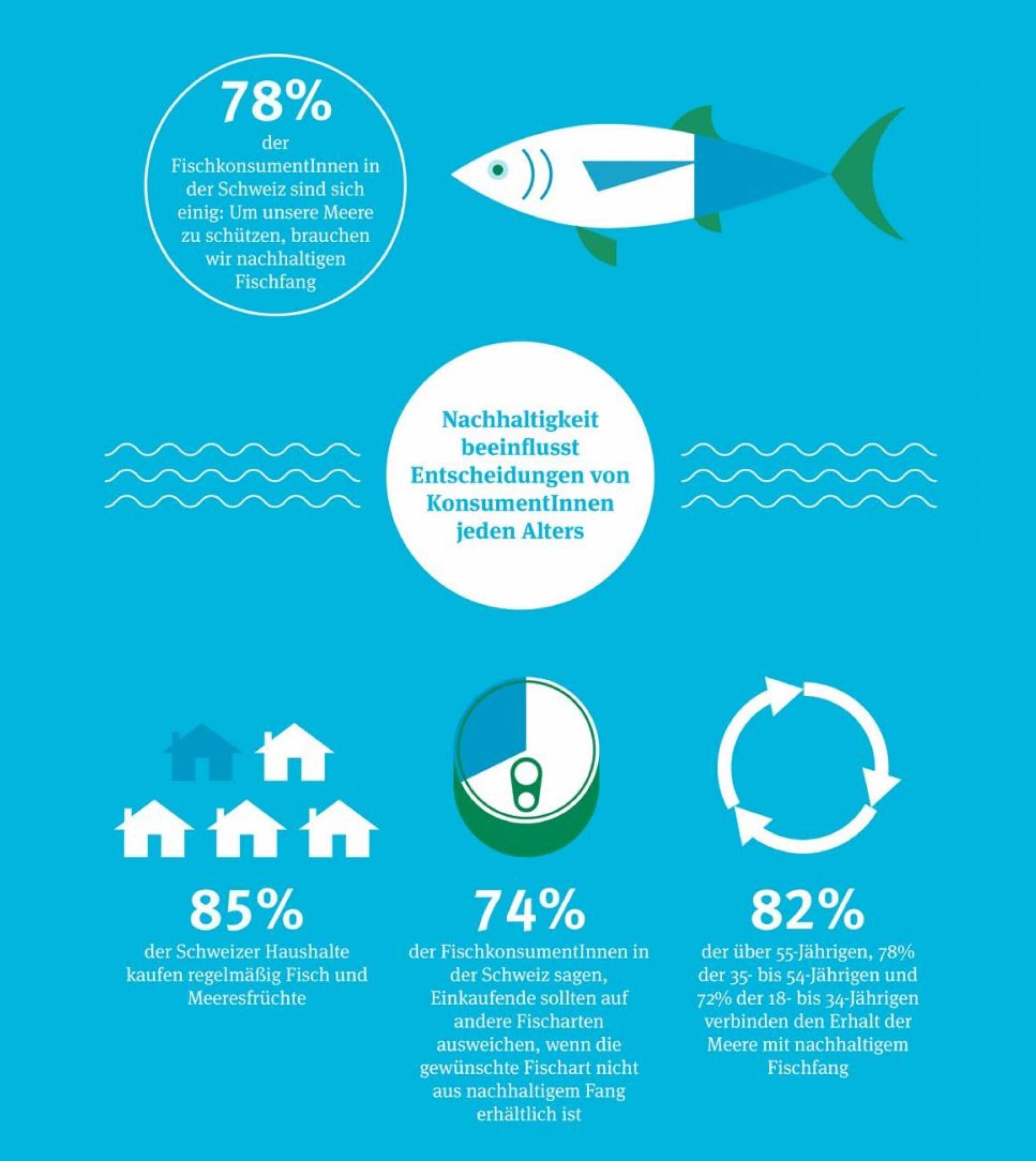 Die weltweite und bislang grösste unabhängige Verbraucherumfrage zum Thema Fischkonsum ergab, dass das Thema Nachhaltigkeit in der Schweiz eine zunehmend wichtige Rolle beim Fischeinkauf spielt. So ist für die 653 befragten FischkonsumentInnen in der Schweiz gleich nach der Frische und dem Gesundheitsaspekt eines Fischproduktes seine Nachhaltigkeit kaufentscheidend – und zwar noch weit vor Faktoren wie dem Preis oder der Marke. Mit diesem Ergebnis sind die SchweizerInnen die „nachhaltigkeitssensibelsten“ FischkonsumentInnen weltweit.
