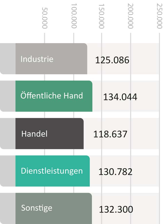 Higher hierarchical levels go hand in hand with higher salaries: the average annual salary is CHF 127,000. Operational purchasers receive an average of CHF 88,000, strategic purchasers CHF 114,000, and purchasing managers CHF 141,000 – a career leap with a salary increase of up to 60%. CPOs top the list with an average of CHF 193,000. Industry dominates, accounting for 53 percent of respondents. Salaries there are close to the overall average. However, public administration and state-affiliated companies pay the best.