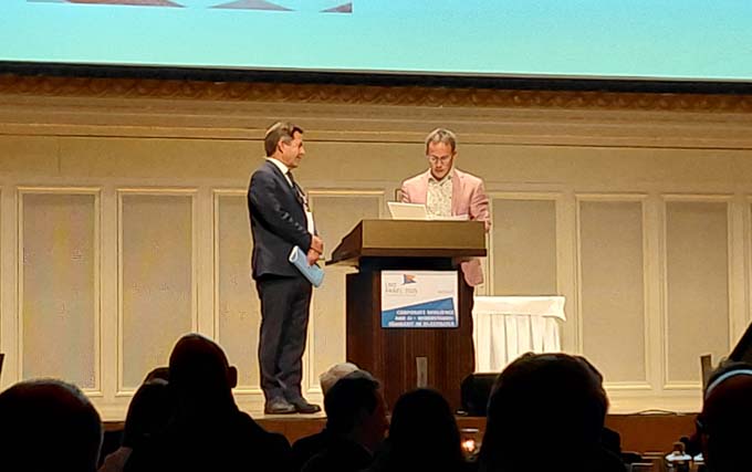 Walter Thurnherr (à gauche) en discussion avec Pascal Sieber de Sieber & Partners, hôte du panel CNO. (Photo : Thomas Berner)
