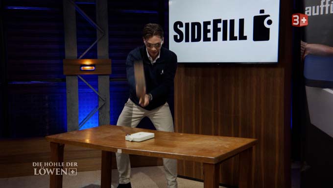 Infine, i giovani fondatori Nicolas e Maurice hanno presentato la loro bottiglia brevettata SideFill: piatta, robusta e riempibile lateralmente. Pratico quando le bottiglie normali non si adattano al rubinetto. Offrirono il 5% della loro azienda per 300.000 franchi. I lions lodarono l'ingegnosità, ma criticarono il peso, l'igiene e la valutazione eccessiva. Un fatturato di 143.000 franchi fino a quel momento, molti riscontri positivi e molte altre idee creative con cui i due giovani fondatori volevano sostenere questa valutazione non si concretizzarono. Felix Bertram è stato ancora una volta chiaro: "La vostra valutazione viene da Fantasialand". Di conseguenza, l'investimento non si è concretizzato, ma Roland Brack ha almeno offerto una partnership di vendita, una piccola ma importante porta d'ingresso nel mondo del retail.